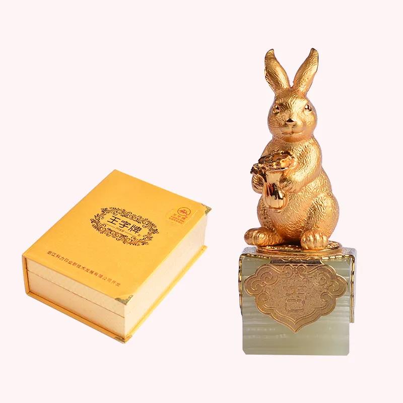 科力印业王字牌生肖兔印章的模胚为手工捏制,精雕细琢,采用精品岫玉和24K镀金打造,字体篆刻精美,印迹清晰,印面平整。