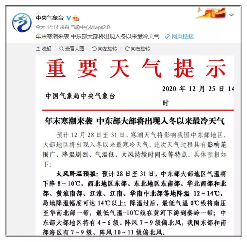中央气象台发出紧急通知年末寒潮来袭,浙江地区出现入冬最冷天气,气温也下降的越来越快,来看看未来几天天气预报。